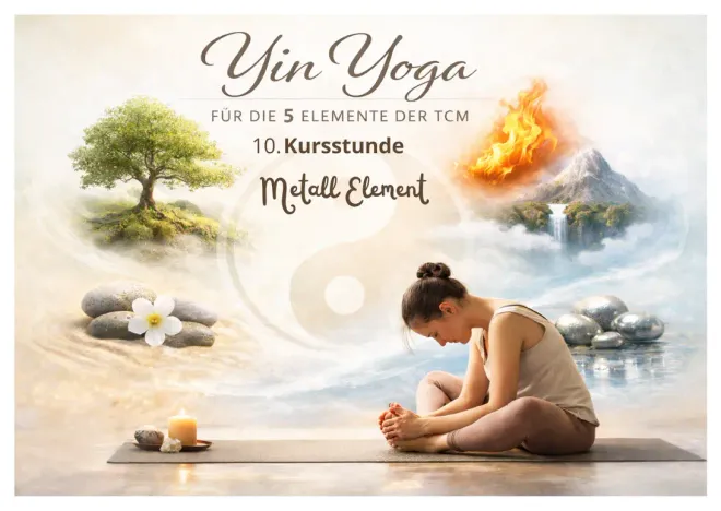 Diese Yin-Yoga-Praxis widmet sich dem Metallelement, das in der Traditionellen Chinesischen Medizin mit den Meridianen von Lunge und Dickdarm verbunden ist. Das Metallelement steht für Loslassen, Klarheit und innere Ordnung – Qualitäten, die uns helfen, Altes gehen zu lassen und Raum für Neues zu schaffen.